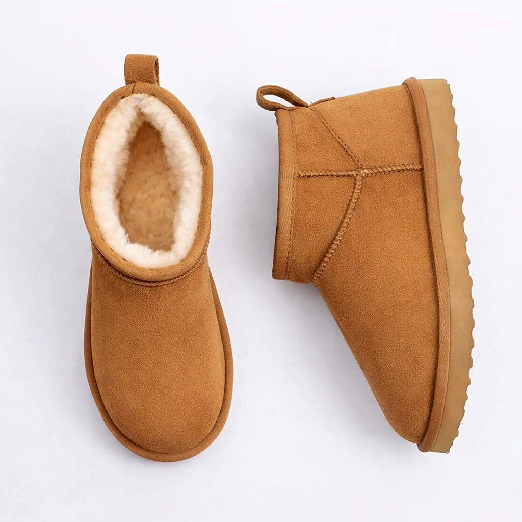 Designed for everyday comfort and effortless style, these slip-on suede boots are the perfect blend of cozy and clean. Crafted with a soft, suede-like exterior and a warm faux-fur lining, they keep your feet insulated without feeling bulky. The minimalist silhouette makes them easy to pair with anything—from lounge sets to casual denim—while the pull-tab detail allows for quick, hassle-free wear.